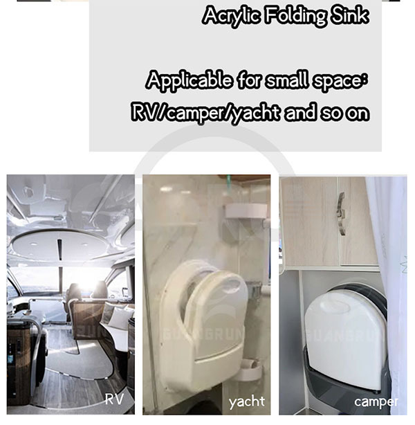 Vasque mural pliable en acrylique : Ce lavabo mural en acrylique est lavable grâce à une technologie spéciale. Son poids léger est adapté aux camping-cars et aux yachts. Il peut être utilisé dans diverses situations. Il peut être fixé au mur. Optimisez l'espace intérieur de votre camping-car ou yacht. Lors de l'utilisation, il suffit de retirer délicatement le bassin pour utiliser le système d'eau normalement. Lorsqu'il n'est pas utilisé, il suffit de soulever le bain d'oiseaux et de le ranger simultanément pour évacuer les eaux usées. L'eau dissimulée embellit l'intérieur de votre caravane.