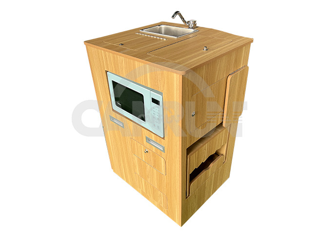 Особенности: Встроенная микроволновая печь 440*300*260 мм, переносная кассетная плита и подставка для приправ полностью хранятся.